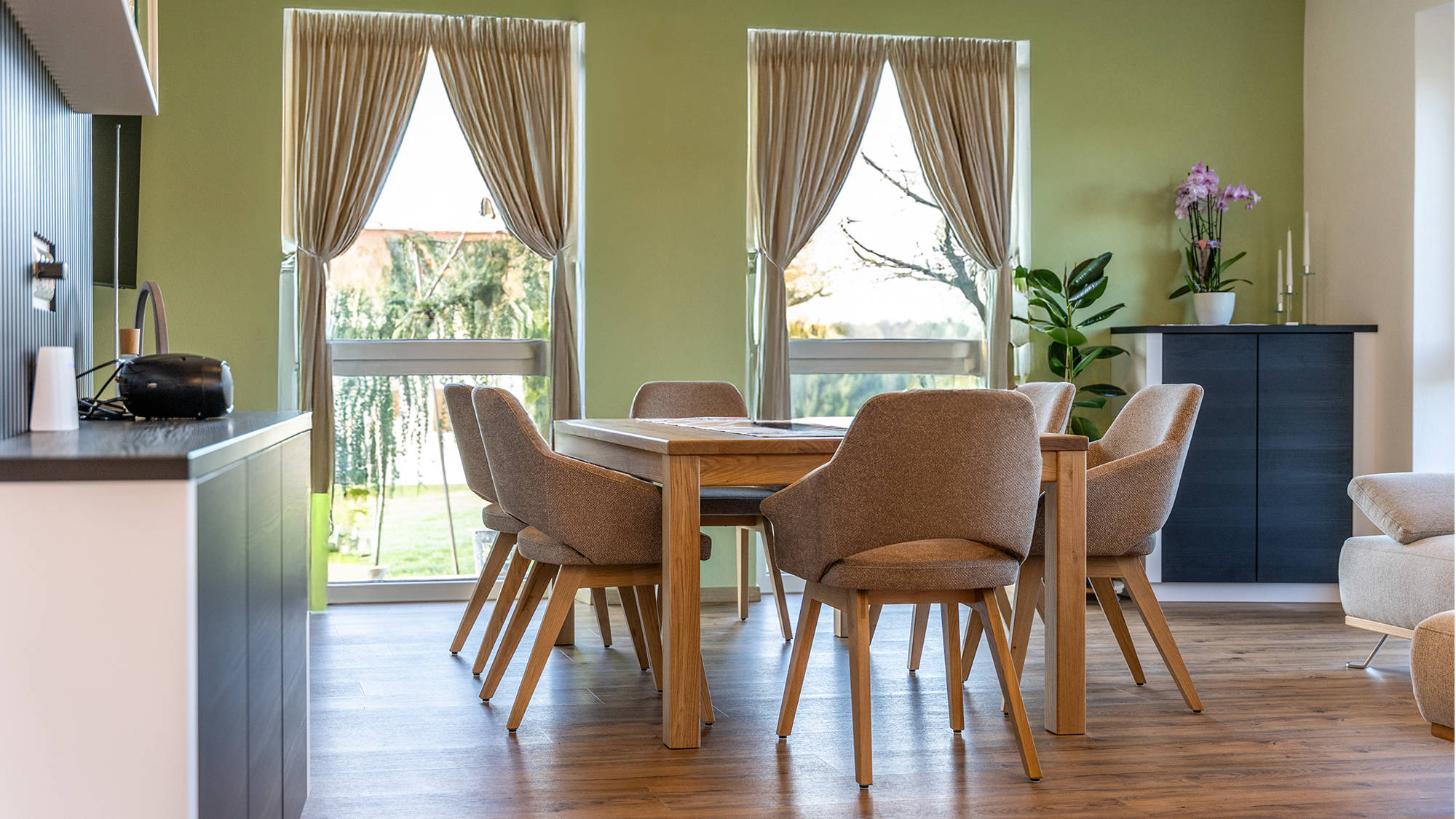 Zum Essen benötigt man einen Tisch, ausreichend groß, und eine komfortable Sitzgelegenheit. Wir unterstützen Sie mit unseren kreativen Ideen und idealen Lösungen.